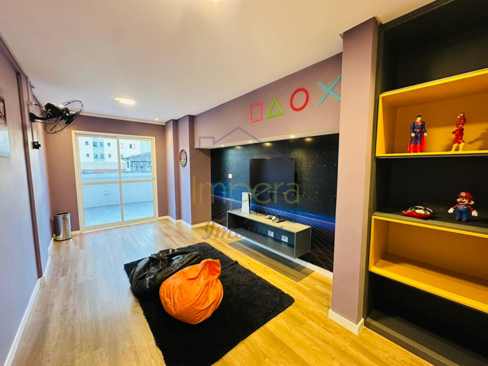 Apartamento de 2 dormitórios, sendo 1 suíte, com sala espaçosa, cozinha com armários, banheiro social, área de serviço e sacada com espaço gourmet e churrasqueira - ideal para momentos de lazer e convivência.