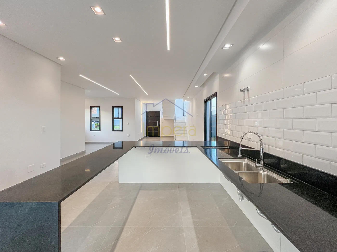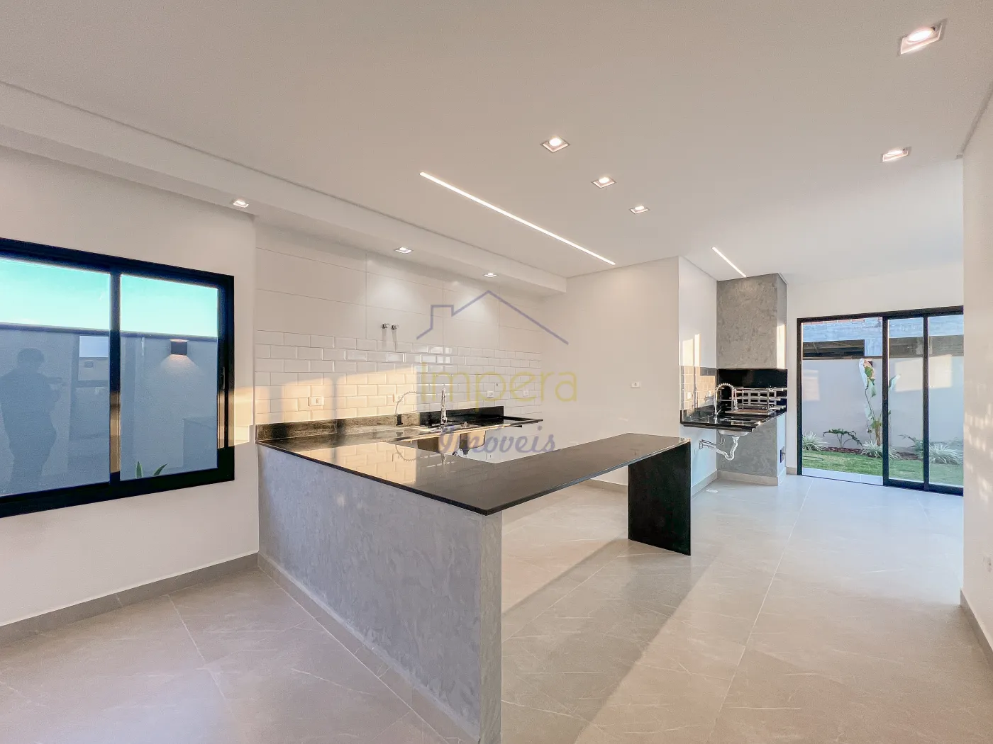 * Cozinha em conceito aberto com bancada em granito em U
