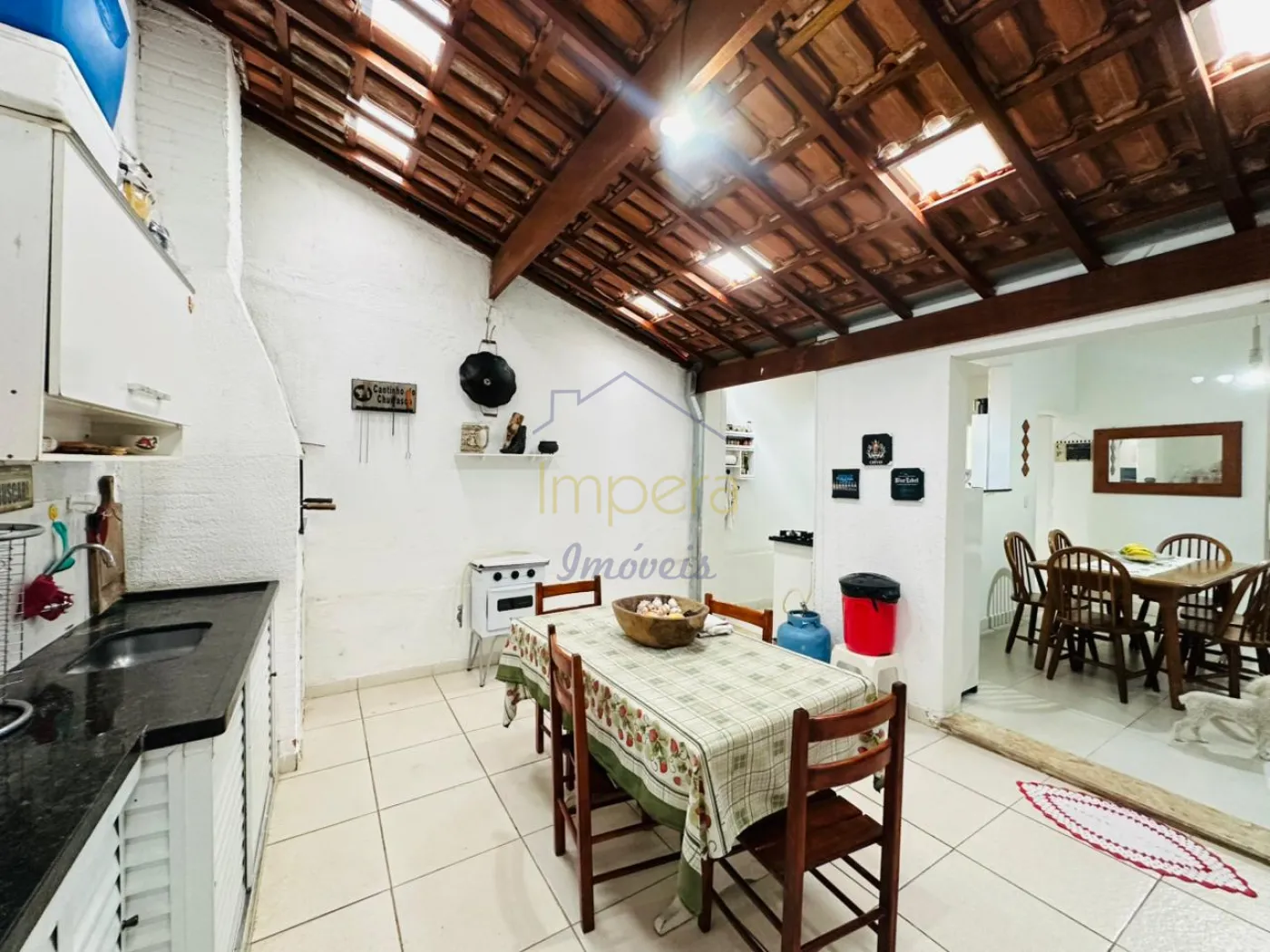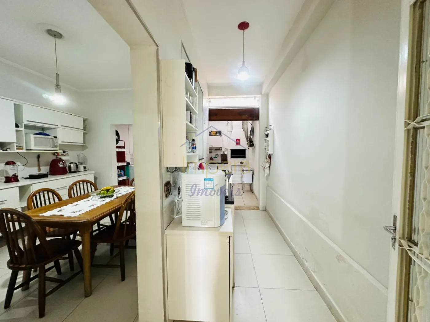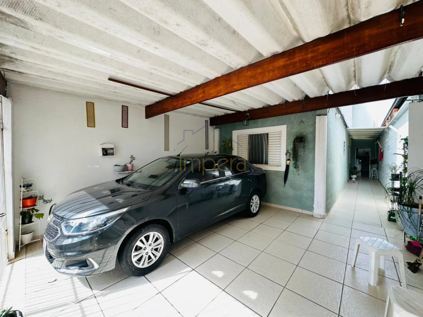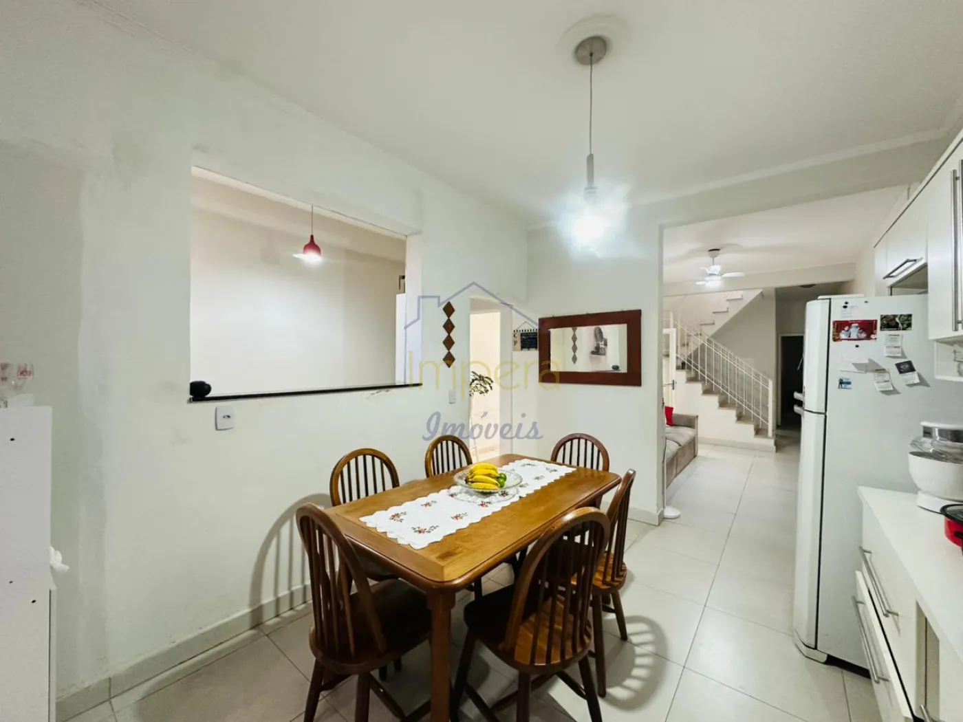 Possui 3 dormitórios sendo um no térreo, 2 banheiros, copa e cozinha, 2 salas sendo uma ambaixo e outra encima, lavanderia e varanda coberta com churrasqueira nos fundos, corredor com cobertura retratil, garagem coberta para 2 carros.
