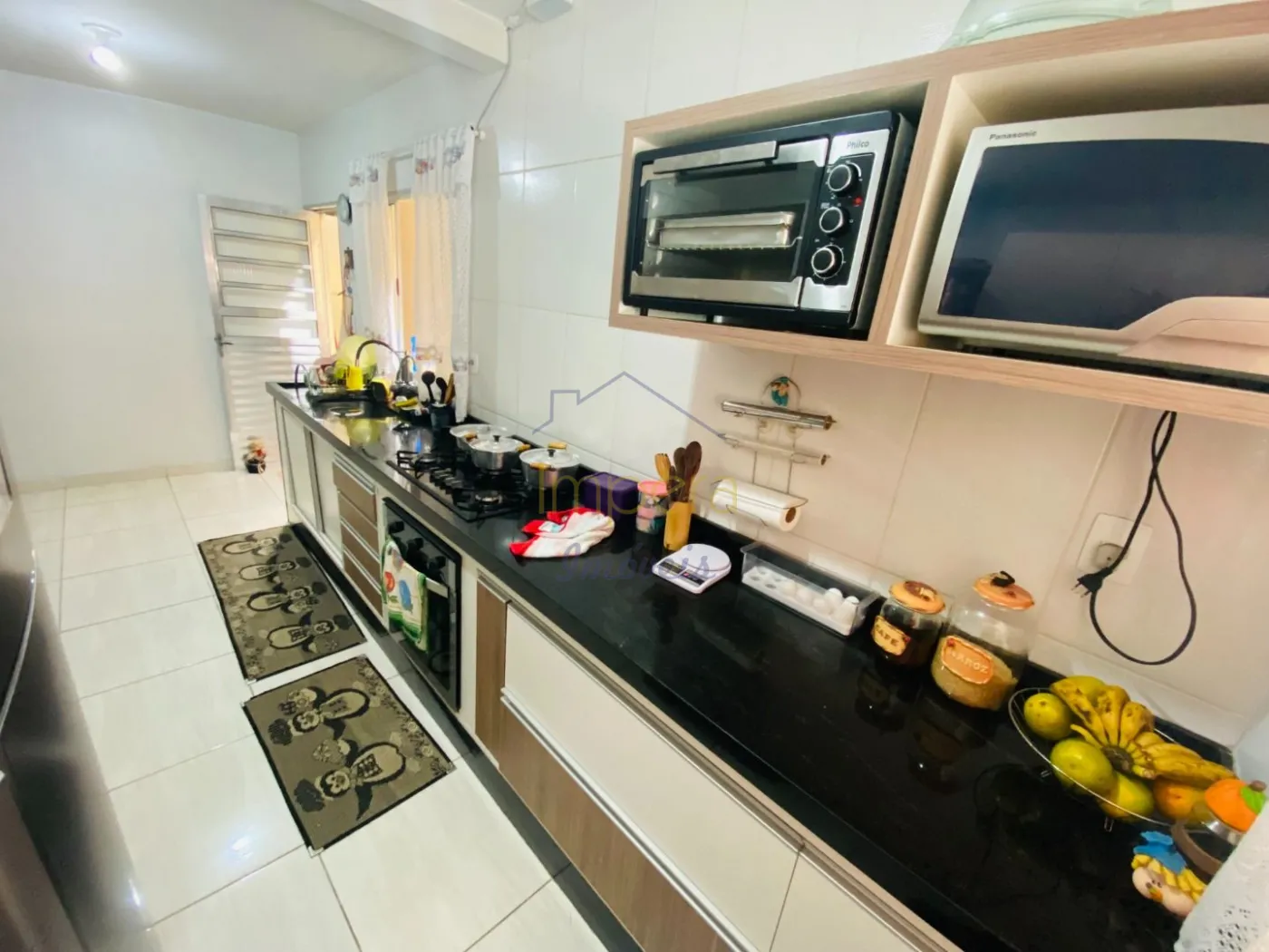 Ampla sala com 2 ambientes, cozinha com móveis planejados e pedras em mármore, banheiro social com box, garagem para 2 carros.